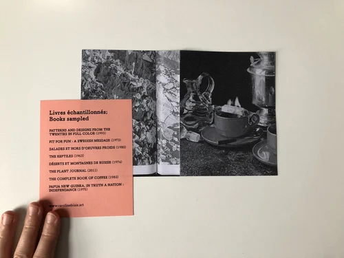 L’idée de cette publication m’est venue lors d’un reconfinement en plein hiver 2021; sans nulle part où aller et avec une soif de dépaysement, j’ai décidé d’explorer ma collection de livres. Les images échantillonnées et assemblées sont tantôt des curiosités, tantôt des aspirations, toujours des fenêtres ouvertes sur un autre lieu et un autre temps. Ces éléments ont été recomposés dans un récit abstrait, sans début, ni fin, dont il existe autant de clés de lecture que de personnes qui regardent.